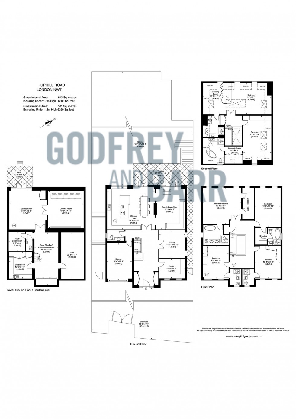 Set back from the road behind security gates, a magnificent Georgian six bedroom, six bathroom luxury home, built only 3 years ago in Mill Hill's most prestigious turning. Offering fantastic accommodation over 4 floors, this stunning house looks out over a beautifully landscaped 120 ft garden. The house offers 6500sq ft of bright and spacious contemporary accommodation, with numerous features including a magnificent galleried quadruple volume staircase, a stunning bespoke kitchen/diner opening to a family room / TV room, stunning home cinema, gym, games room and open entertaining area/bar on the garden level.