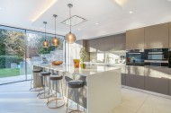 Built & finished to a high specification throughout; features include a magnificent 29’2 ft x 19’9 ft open plan kitchen/family room with incredible 7 metre wide, full height 2.7 metre floor to ceiling, ultra slim sliding aluminium doors leading to the lovely south west facing rear garden & terrace, 3 further reception rooms, utility room, large master suite with luxurious backlit dressing room & spacious en-suite bathroom.