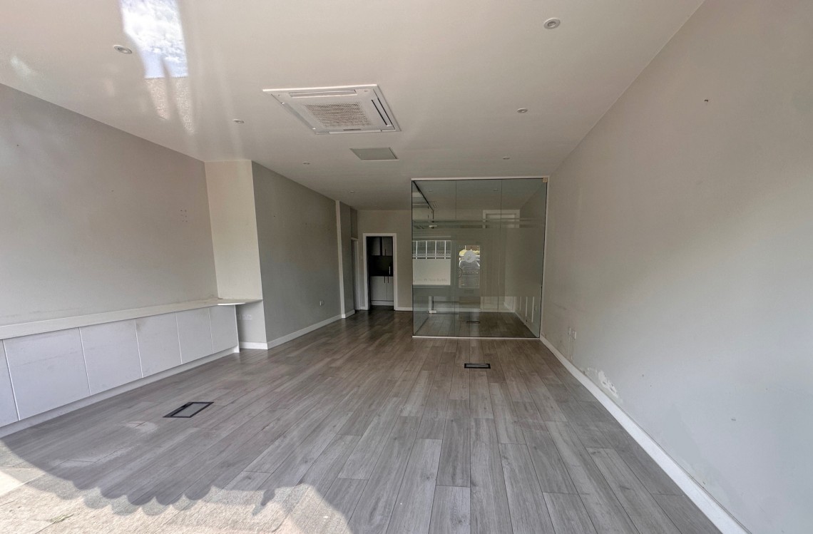 Arranged with a large front sales / office area with a glass board room at the rear and a single WC/washroom, Kitchenette, Air conditioning ,security shutters and basement storage.